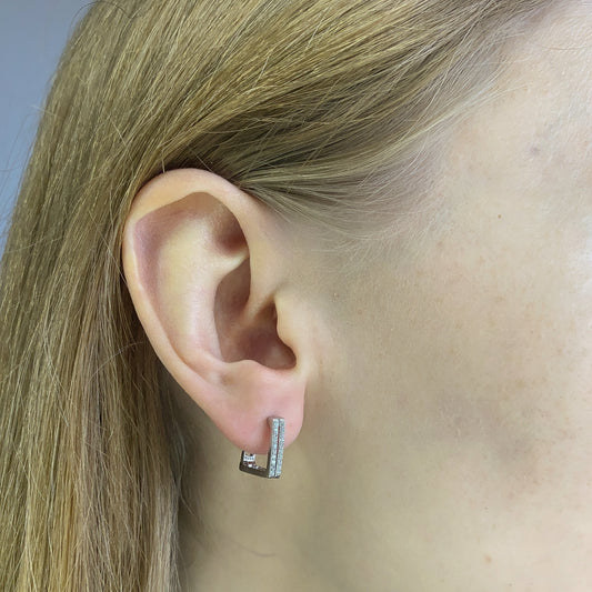 Sterling Silver Rhodium Plated CZ English Lock Earrings