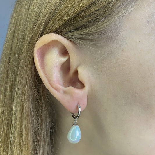Sterling Silver Rhodium Plated Hoops with Pearl Charms