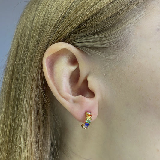 Sterling Silver Gold Plated Multi Coloured CZ Studs
