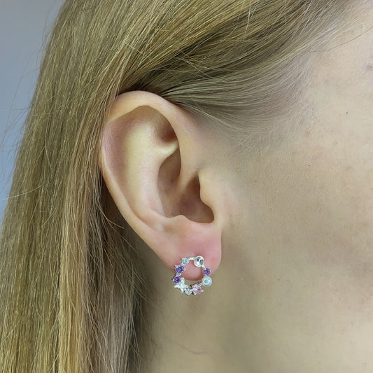 Sterling Silver Wreath Stud Earrings