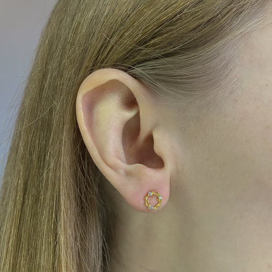 Sterling Silver Gold Plated Round CZ Studs