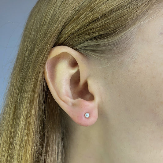 Sterling Silver Rhodium Plated 3 mm Pearl Studs