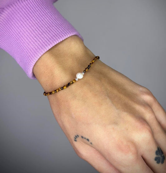 Tiger Eye Stone Bracelet with Freshwater Pearl