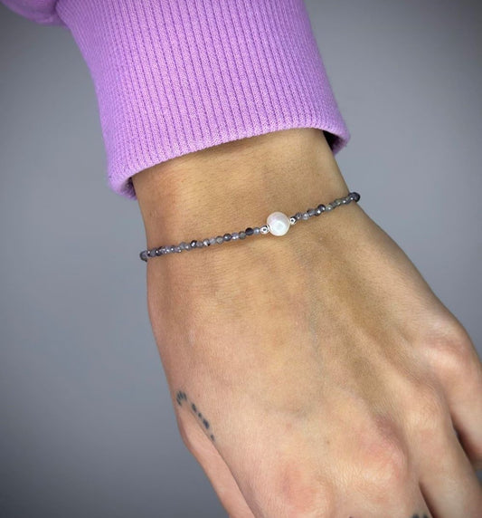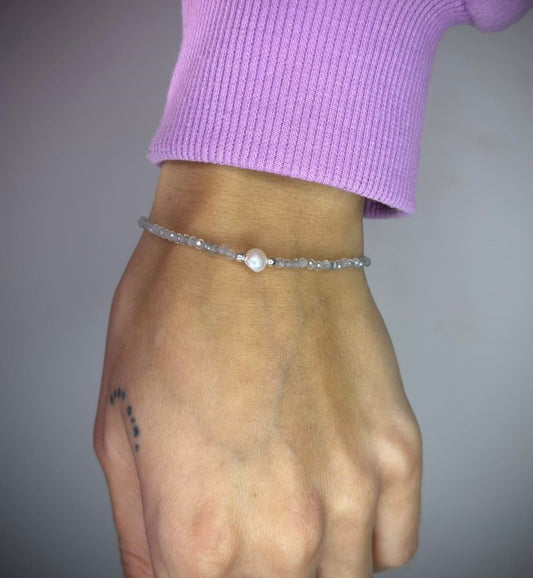 Labradorite Stone Bracelet with Freshwater Pearl