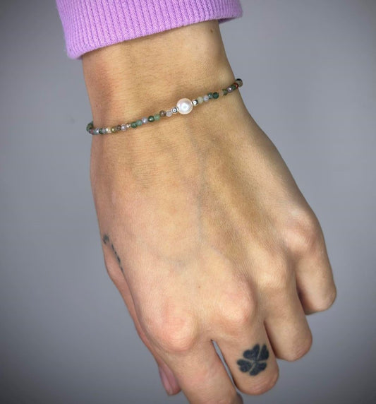 Green Jasper Stone Bracelet with Freshwater Pearl
