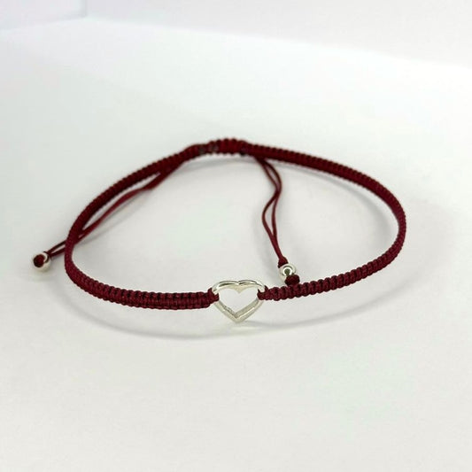 Various Colours Thread Bracelet with Sterling Silver Heart