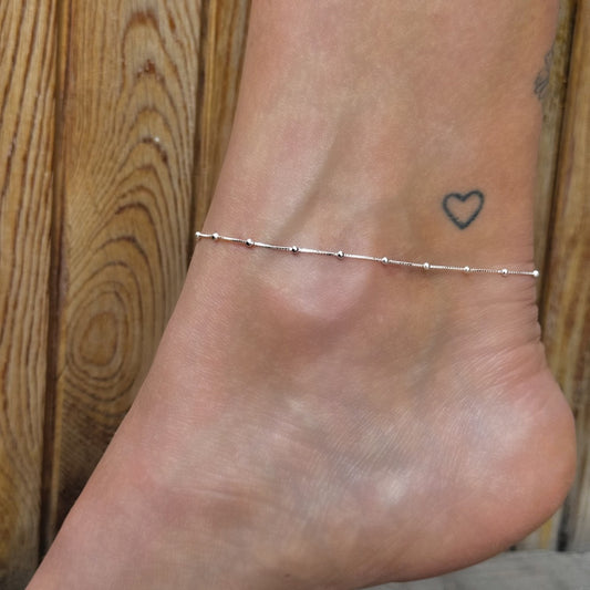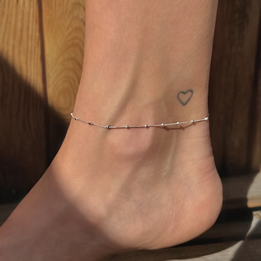 Sterling Silver Beaded Chain Anklet