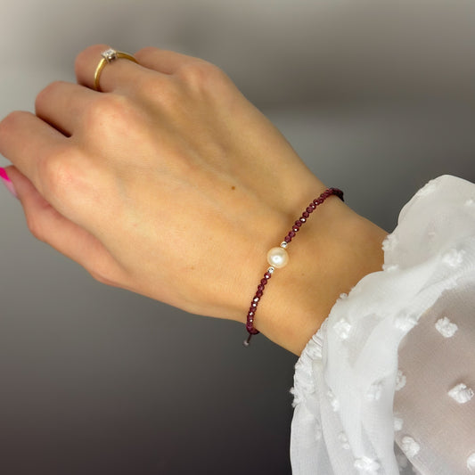 Garnet Stone Bracelet with Freshwater Pearl