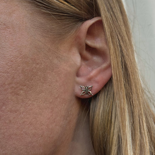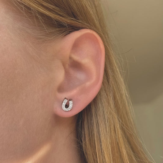 Sterling Silver Rhodium Plated CZ Horseshoe Studs