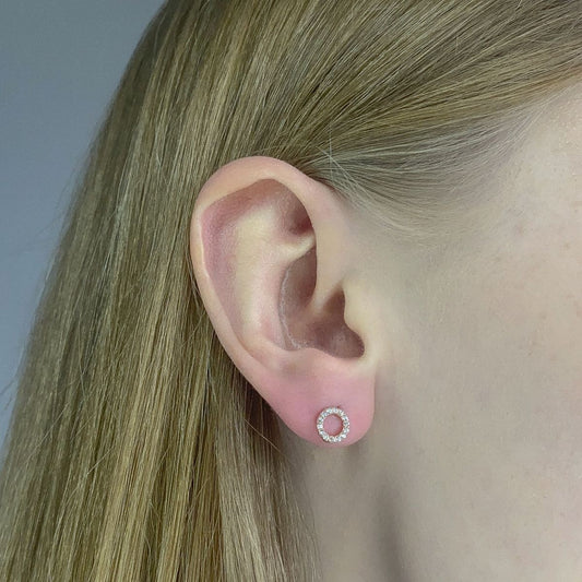 Sterling Silver Rose Gold Plated Round CZ Studs