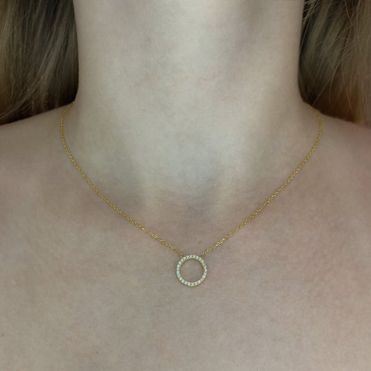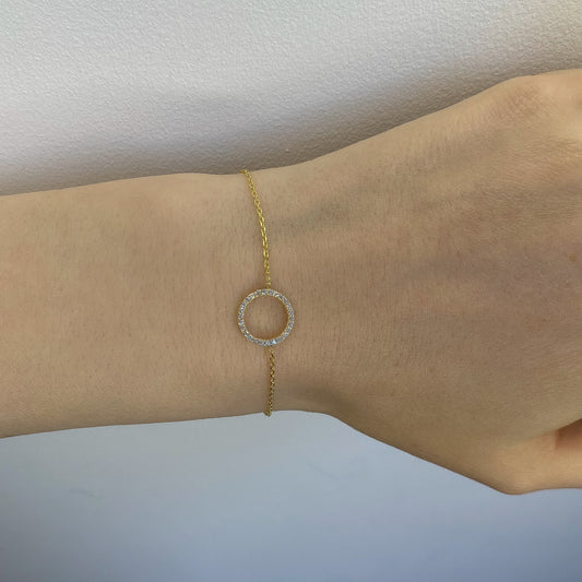 Sterling Silver Gold Plated CZ Circle Chain Bracelet