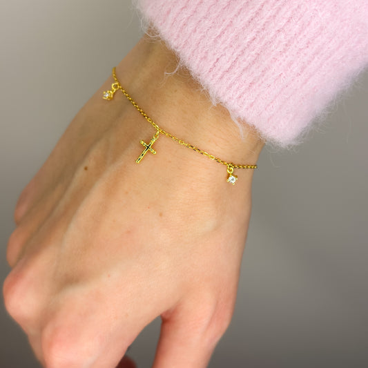 Sterling Silver Gold Plated Cross Pendant Bracelet