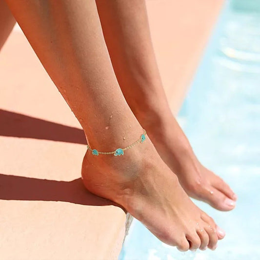 Sterling Silver Gold Plated Enamel Elephant Anklet