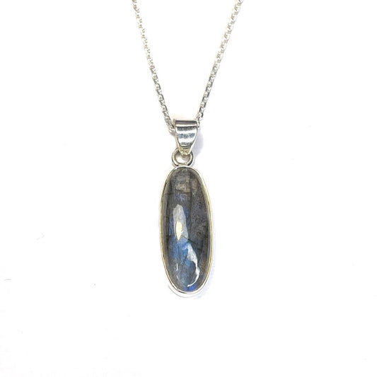 Sterling Silver Oval Labradorite Pendant Necklace