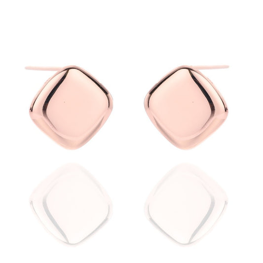 Sterling Silver Rose Gold Plated Square Studs