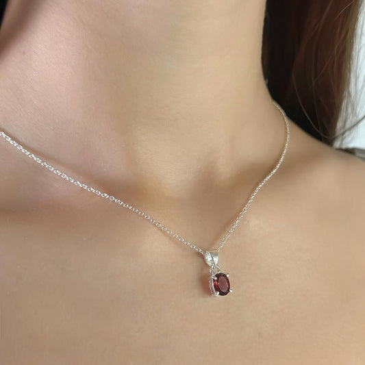 Sterling Silver Oval Garnet Pendant Necklace