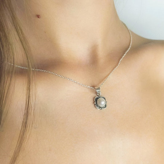 Sterling Silver Pearl Flower Pendant Necklace