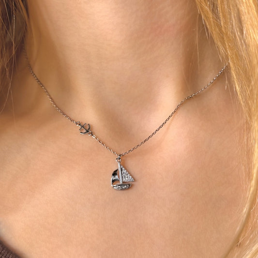 Sterling Silver CZ Sailboat Necklace