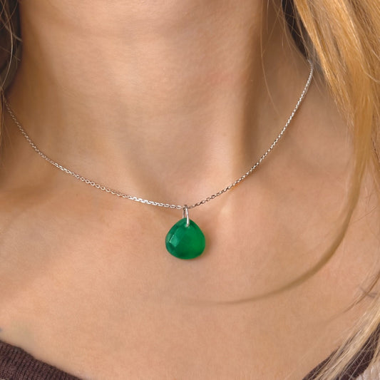 Sterling Silver Green Onyx Pendant Necklace