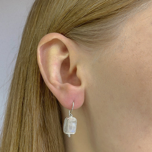 Sterling Silver Rectangle Moonstone Drop Earrings