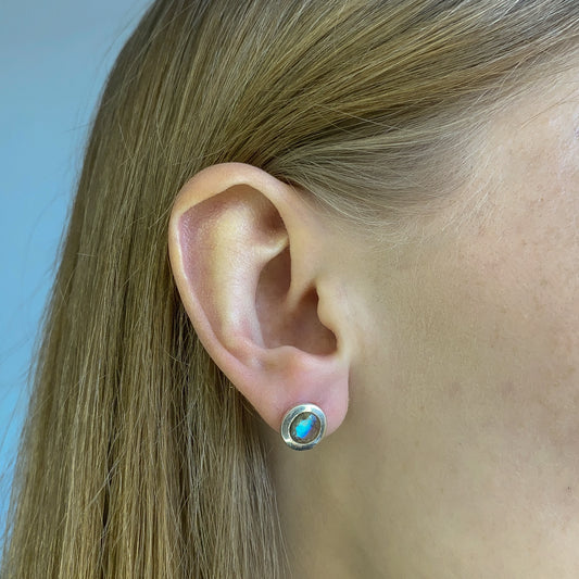 Sterling Silver Round Labradorite Studs