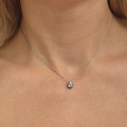 Sterling Silver Rhodium Plated CZ Teardrop Necklace