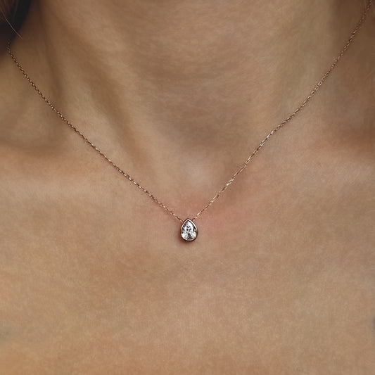 Sterling Silver Rose Gold Plated CZ Teardrop Necklace
