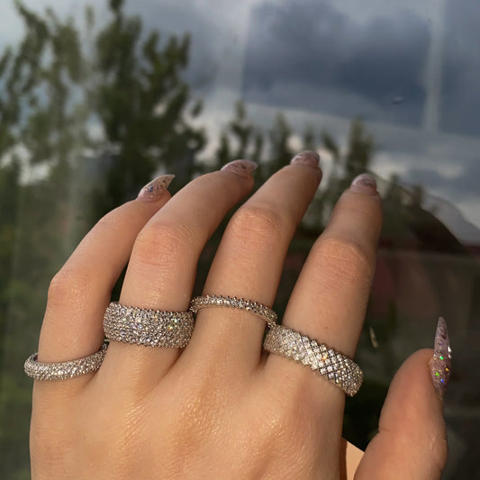 Silver Rose Gold Plated Three Row CZ Band Ring