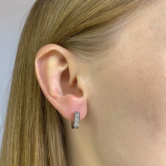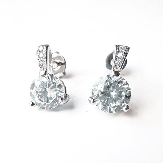 Sterling Silver Rhodium Plated CZ Crystal Stud Earrings