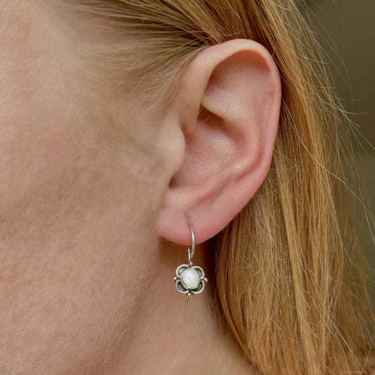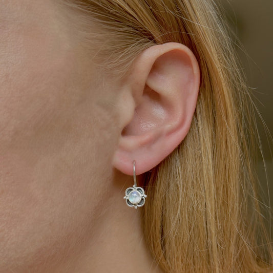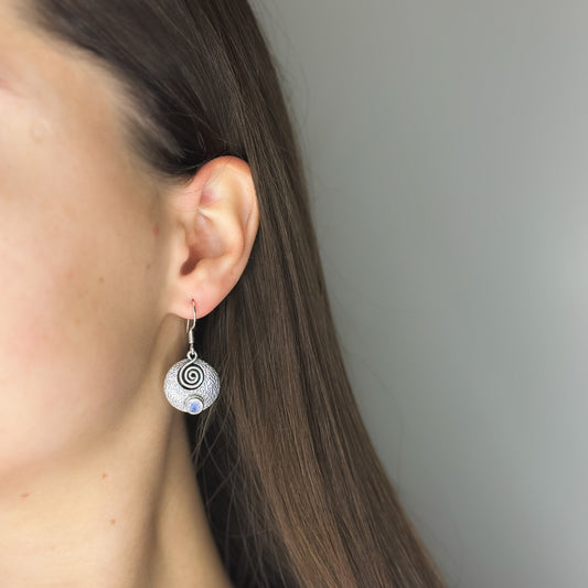 Sidabriniai kabantys auskarai su mėnulio akmeniu