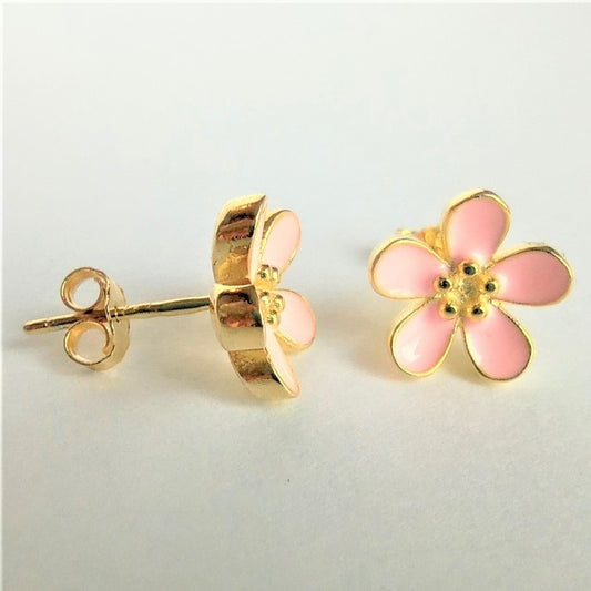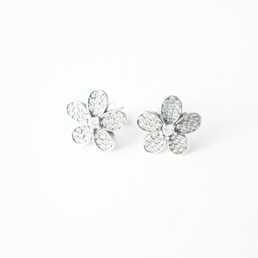 Sterling Silver Rhodium Plated Enamel Flower Studs
