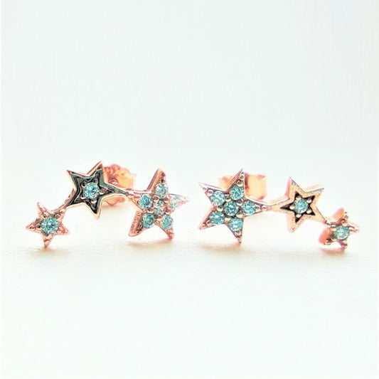 Sterling Silver Rose Gold Plated CZ Star Studs