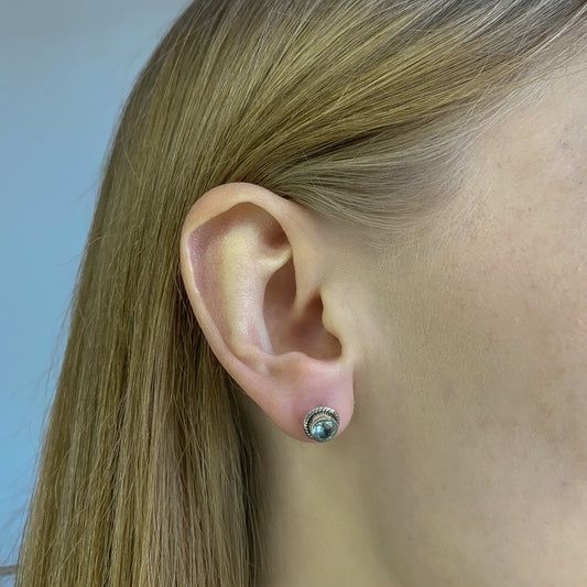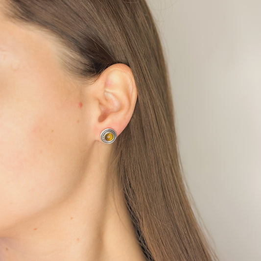 Sidabriniai auskarai su apvaliu tigro akies akmeniu