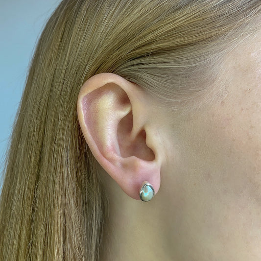 Sidabriniai kabantys auskarai su ovaliu mėnulio akmeniu