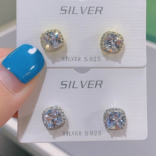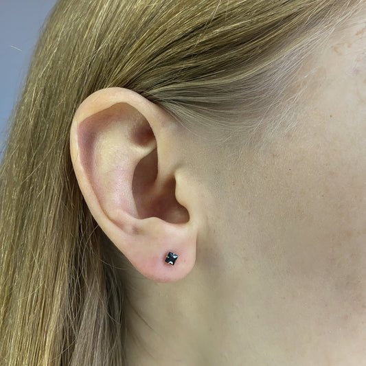 Sterling Silver Rhodium Plated 3 - 5 mm Black CZ Square Studs