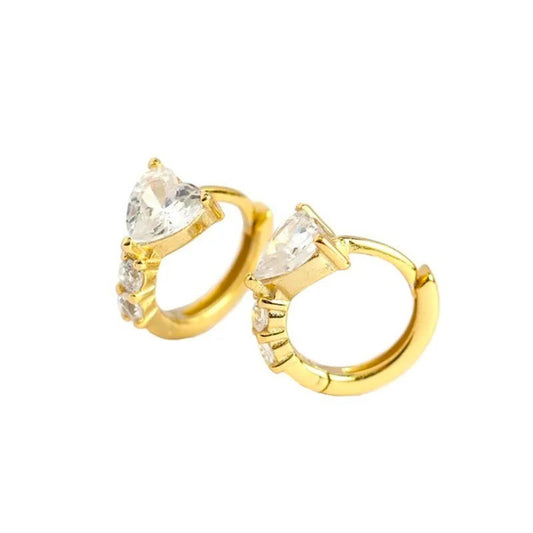 Sterling Silver Rhodium Plated Hoops with Heart Charms