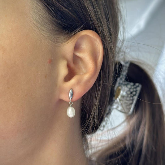 Sterling Silver Gold Plated Pearl Drop Earrings