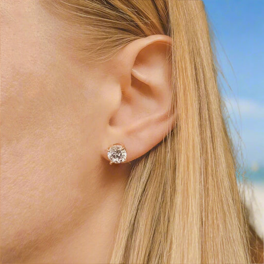 Sterling Silver Rhodium Plated Round Studs with CZ
