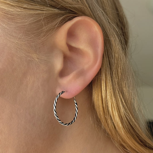 Oxidized Silver 12 - 35 mm Twisted Hoops
