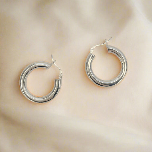 Scandinavian Silver Rose Gold Plated Hoops with CZ