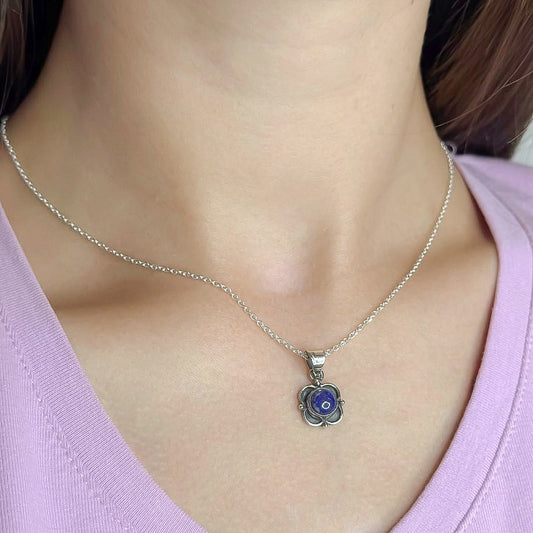 Sterling Silver Lazurite Flower Pendant Necklace