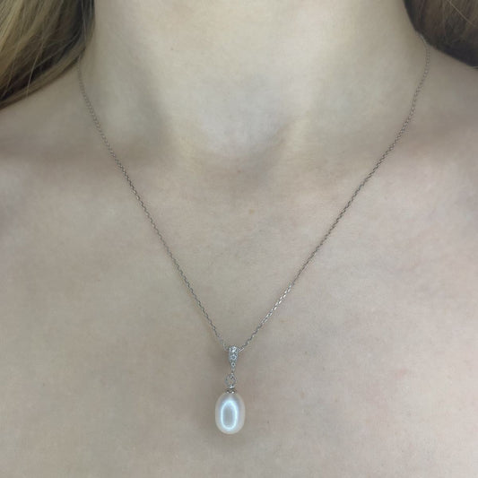Sterling Silver Rhodium Plated Pearl Pendant Necklace