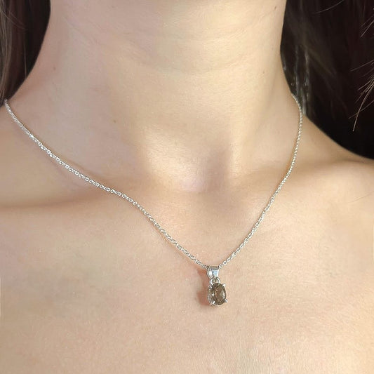 Sterling Silver Oval Smoky Quartz Pendant Necklace