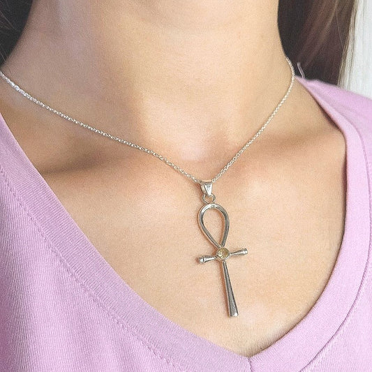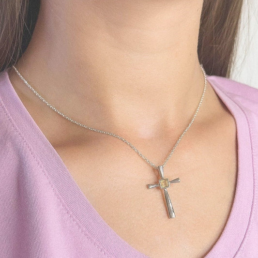 Sterling Silver Citrine Cross Pendant Necklace
