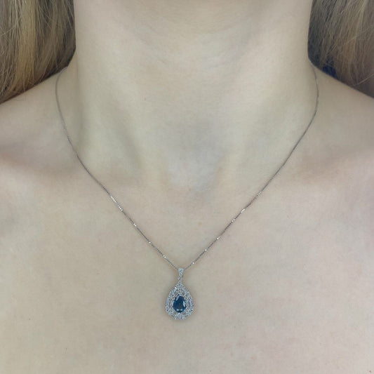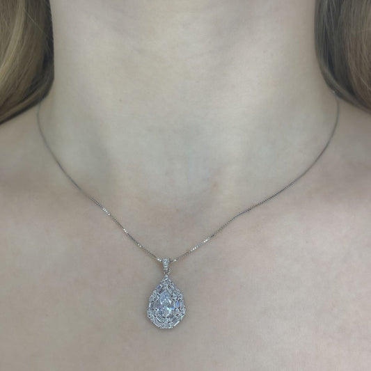 Sterling Silver Rhodium Plated Teardrop CZ Necklace