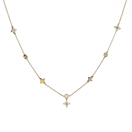 Sidabrinis auksuotas kryželis su cirkoniais ir grandinėle