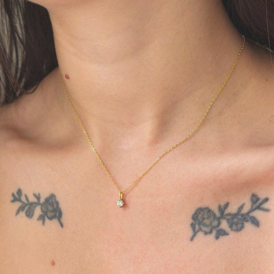 Sidabrinis auksuotas pakabukas su apvaliu cirkoniu ir grandinėle