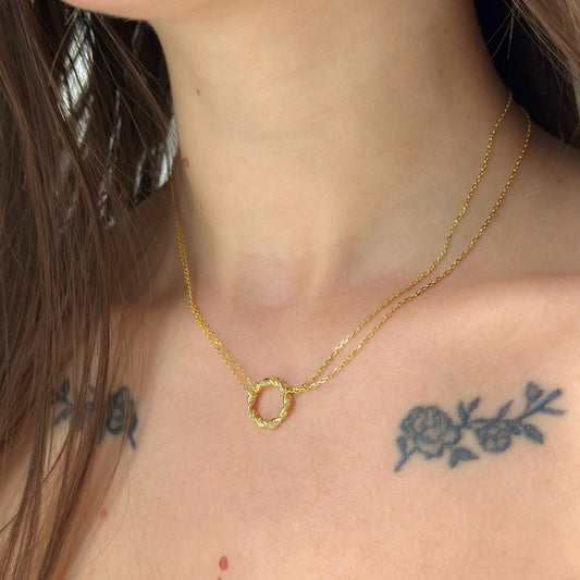Sidabrinis auksuotas minimalistinio stiliaus burbuliukas su grandinėle