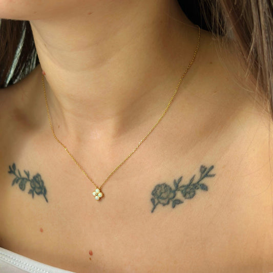 Sidabrinis auksuotas pakabukas su sintetiniu opalu ir grandinėle
