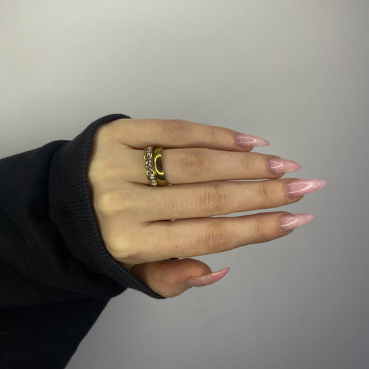 Auksuotas dvigubas žiedas su cirkoniais